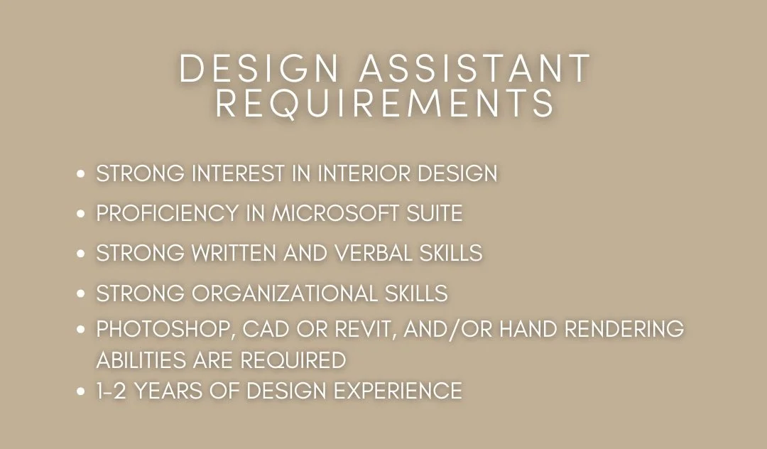 We are currently seeking two talented additions to our team: an Interior Design Assistant and a Project Manager. These are full-time, in-office positions and may require occasional travel for out-of-state projects. We also offer work-from-home Fridays.